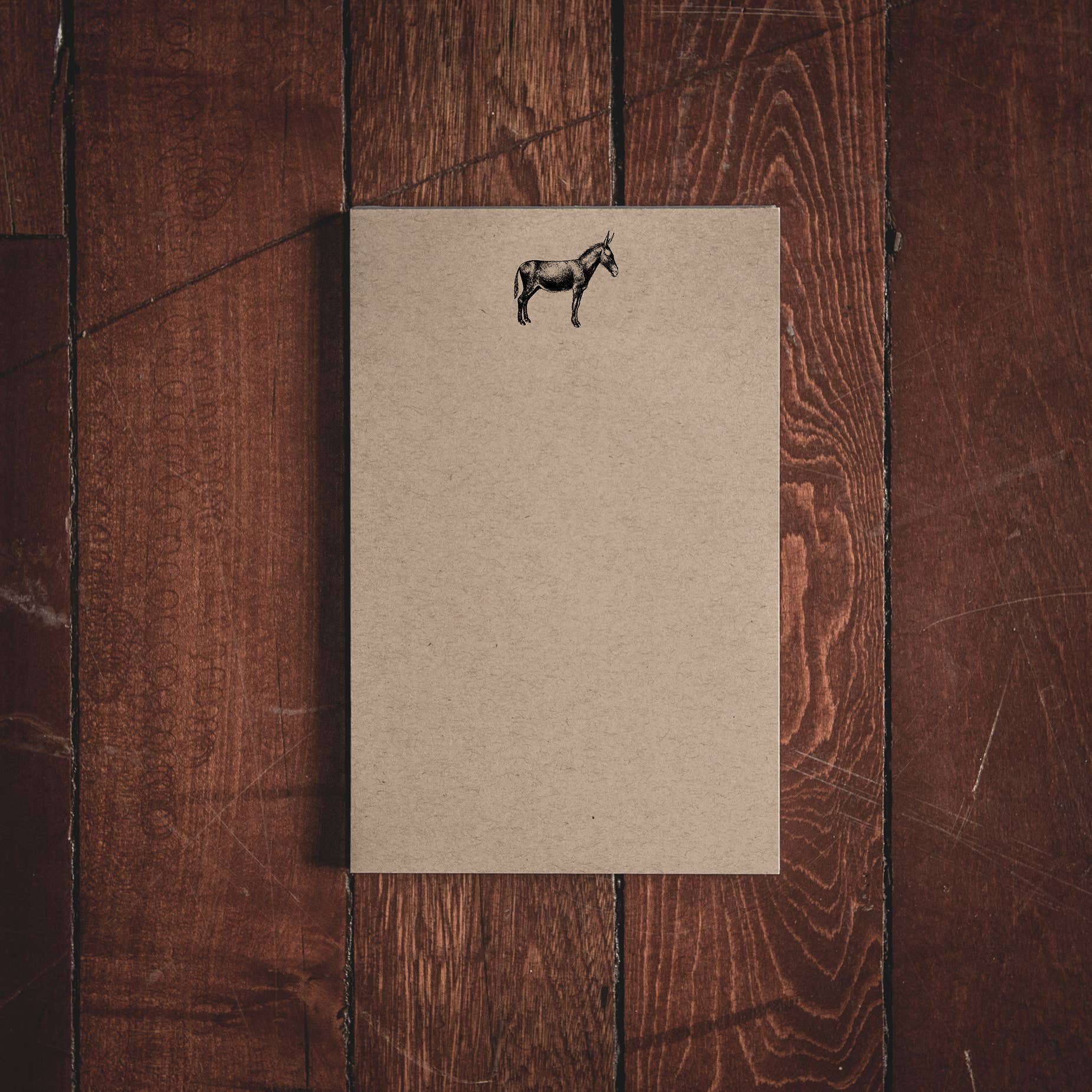 A playful notepad featuring a small mule illustration on a neutral kraft-toned cover, perfect for jotting lists, notes, or daily thoughts.